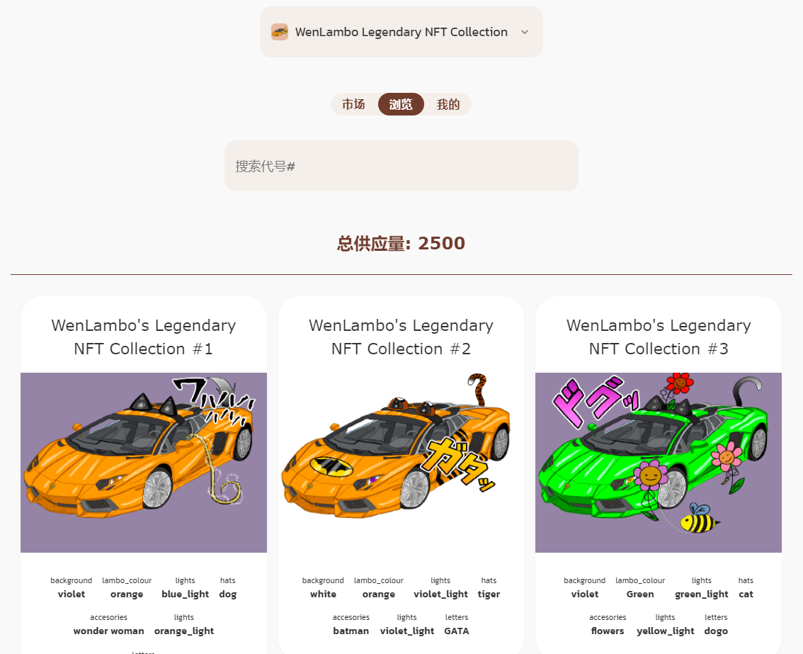 你可以在浏览页面中查看一个系列所有的NFT，并通过搜索来找到特定的NFT。